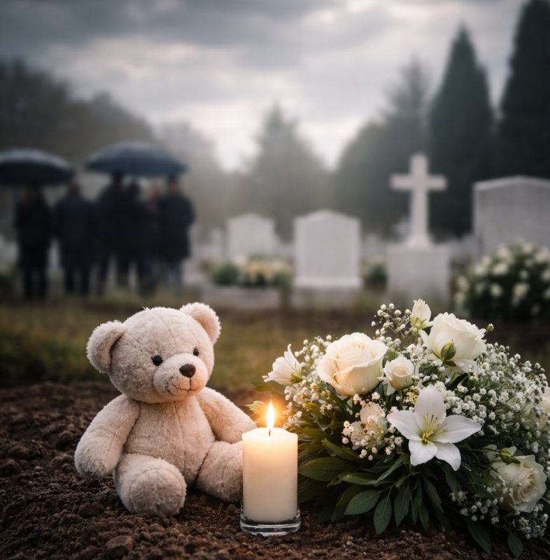 Durante a cerimônia, um momento de forte emoção marcou a despedida: o pai da criança conduziu o caixão até a sepultura, em uma cena que sensibilizou os presentes e evidenciou o impacto da tragédia para os familiares.