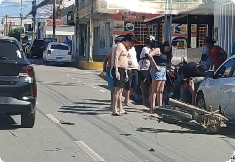 Um acidente de trânsito envolvendo um carro e uma motocicleta mobilizou equipes de resgate na Rua Sinfrônio Nazaré, em Sousa, nas proximidades do Batalhão do Corpo de Bombeiros.